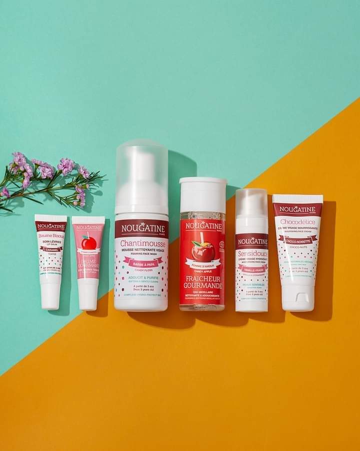 Nettoyage du visage avec CHANTIMOUSSE au parfum barbe a papa, suivi de l'eau micellaire FRAICHEUR GOURMANDE au parfum pomme d'amour.
